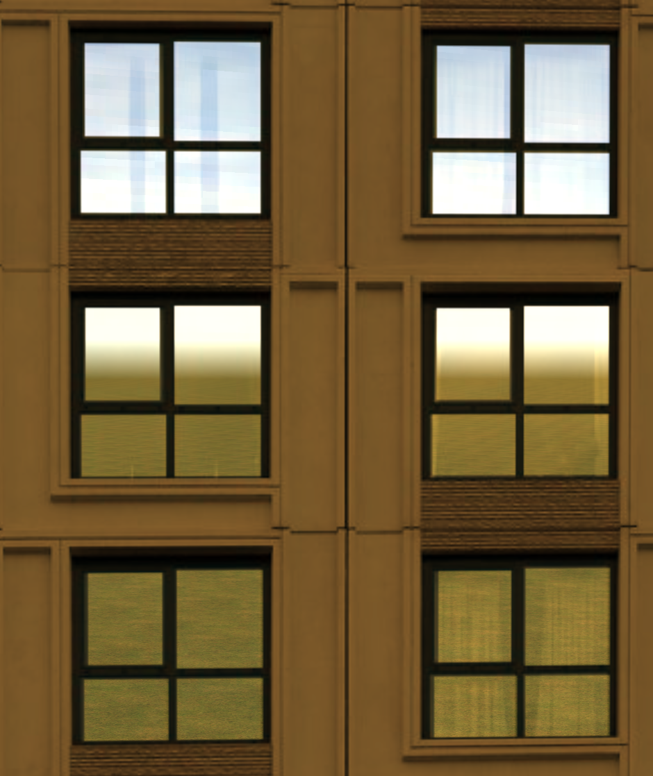 One of the aims of my work is to be able to apply reflections on buildings in city or village scenes. Environment mapping is extremely useful in this case because simple specular reflections of light sources is not enough to convey a convincing façade look.