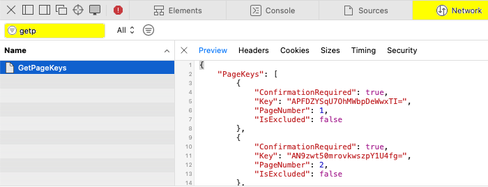 1️⃣ Avec Safari → Inspector → Network → Filter=GetP … intercepter le trousseau de clés GetPageKeys AVANT de cliquer [Read now] sur la page de la publication PressReader
